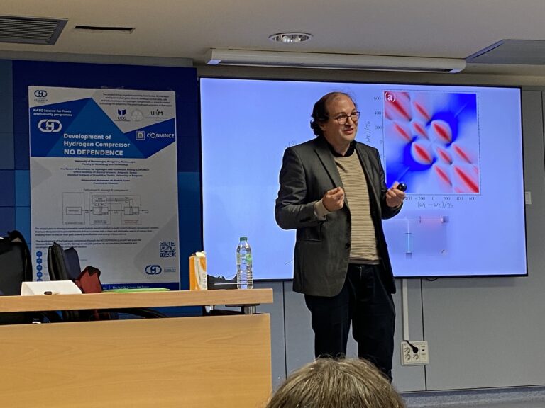 The NATO SPS Workshop entitled “Development of Hydrogen Compressors (NO-DEPENDENCE)”, which took place from 19th to 21st October 2025, at the Universidad Autónoma de Madrid (UAM), Faculty of Sciences, brought together scientists, researchers, and industry representatives to share knowledge and strengthen international collaboration in advanced materials and hydrogen technologies. The workshop was organised with the support of the NATO Science for Peace and Security (SPS) Programme within the NO-DEPENDENCE project’s wider research and innovation framework, which aims to develop a technically innovative, multi-stage hydrogen compression system for autonomous hydrogen refuelling stations, thereby making them more cost-effective, safe and accessible. The scientific sessions featured a rich and diverse program of keynote and invited lectures, covering topics from quantum technologies and photonics to hydrogen production, storage, and electrolysis systems.